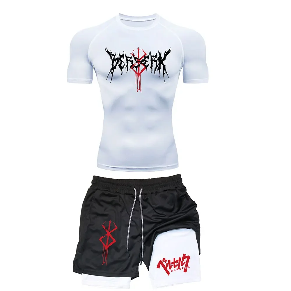 Anime Berserk Compression Set Men's Workout Gym Tshirts Breathable Running Shorts Quick Dry Sports Rash Guard Sportwear Set