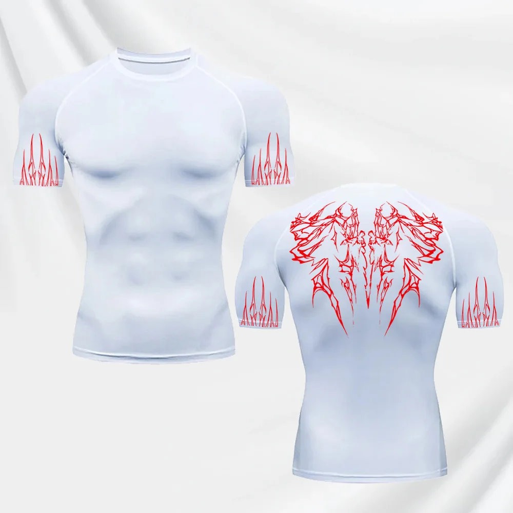 Men's Gothic Printed T-shirt Gym Exercise Tights Quick Dry Running Sport Short Sleeve Breathable Elastic Top S-3XL