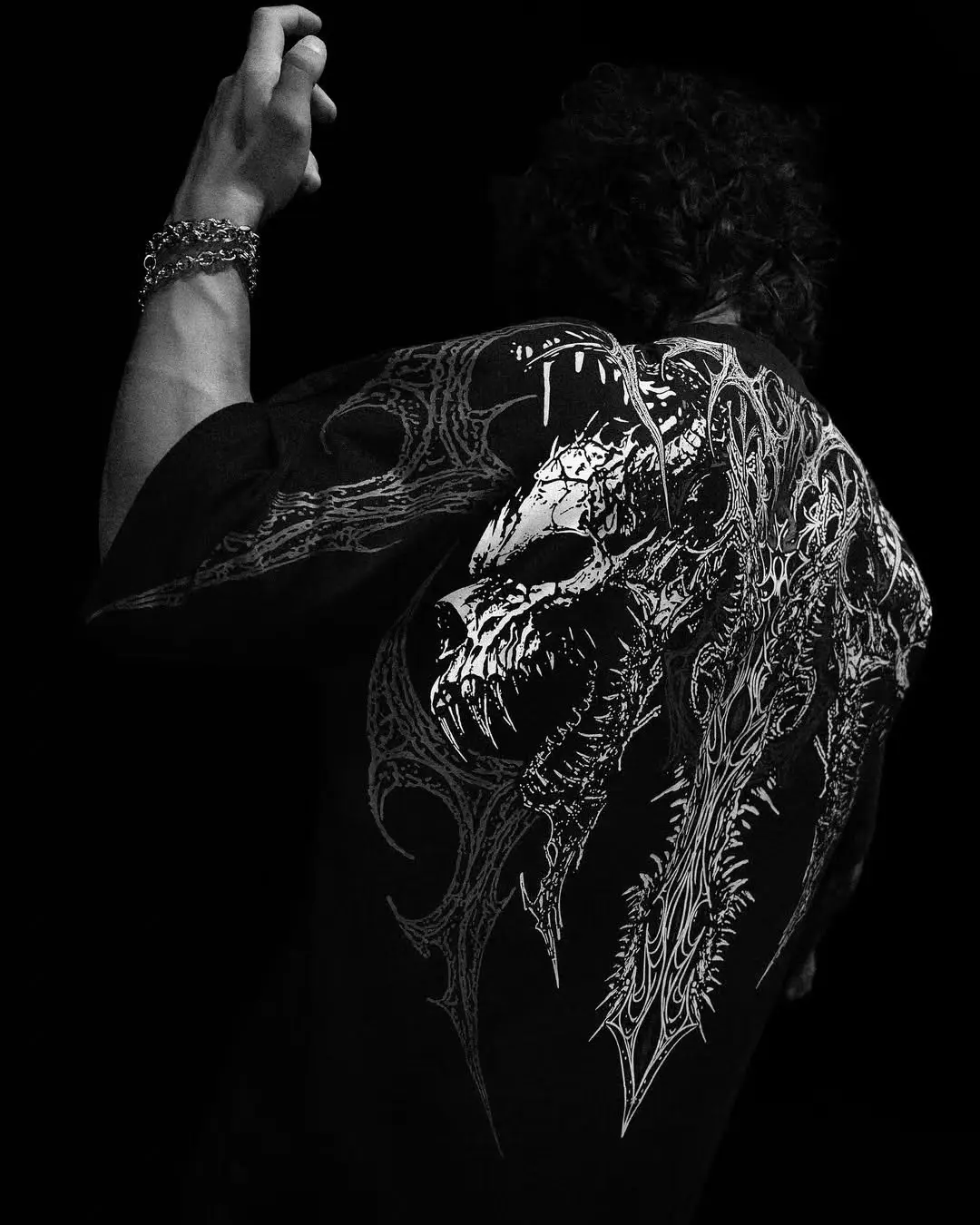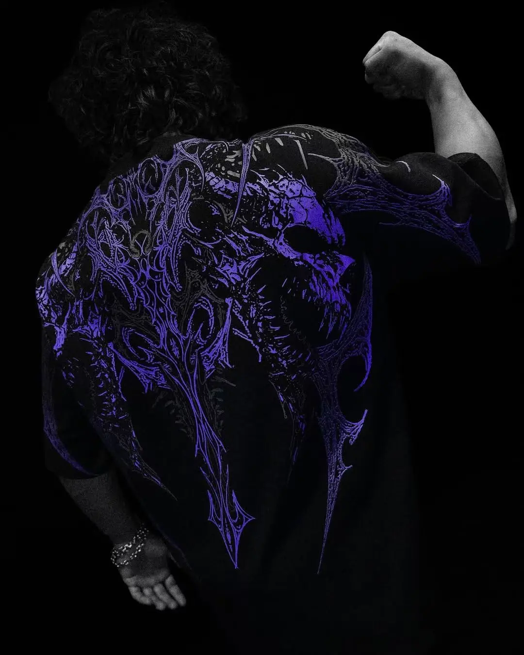 Streetwear fashion Harajuku Goth skeleton dark men shirt 2025 Y2K large pattern hip-hop casual short-sleeved trend loose T-shirt