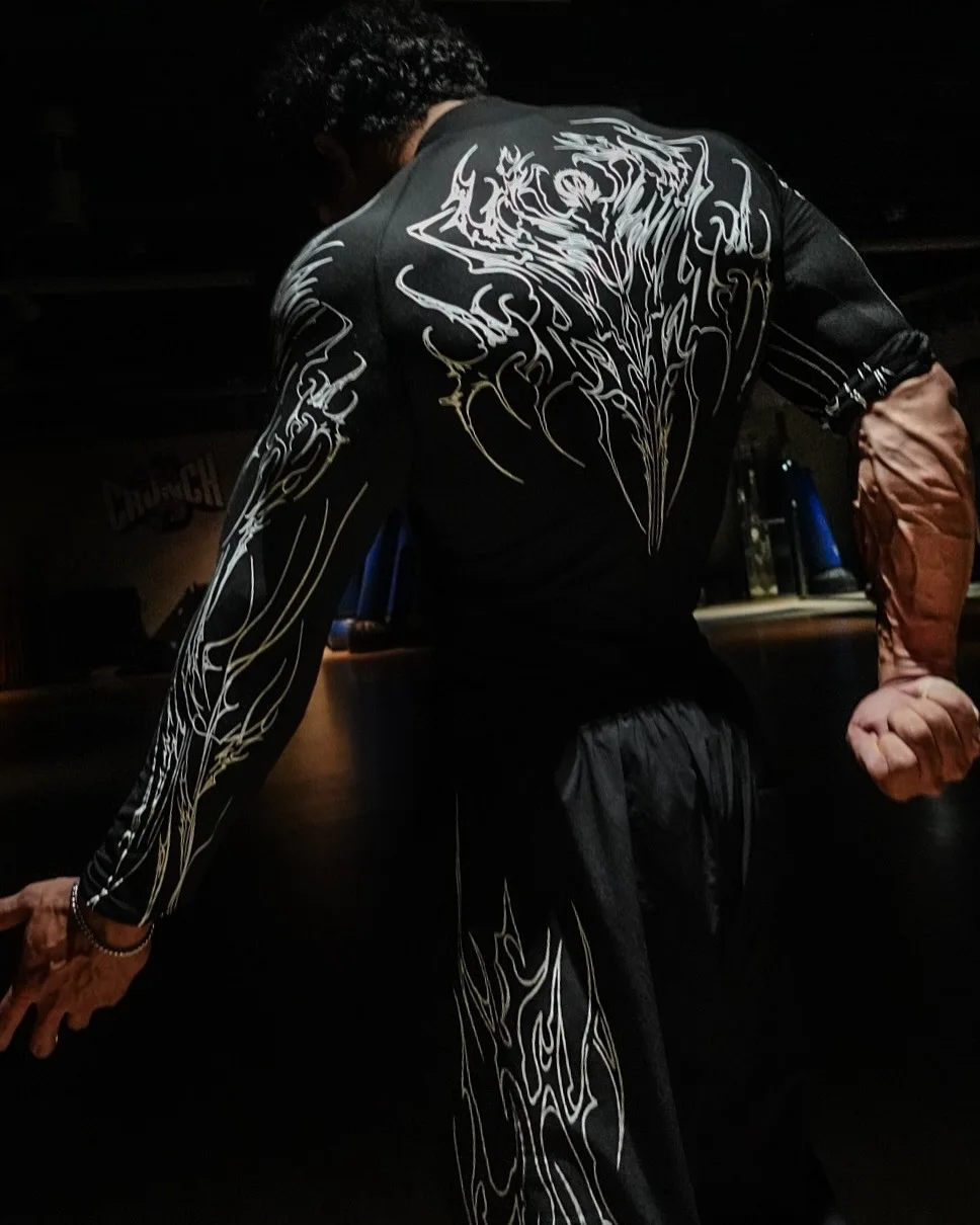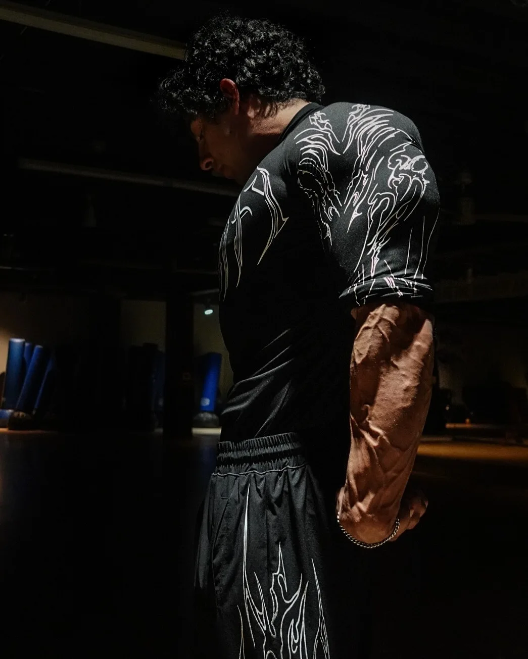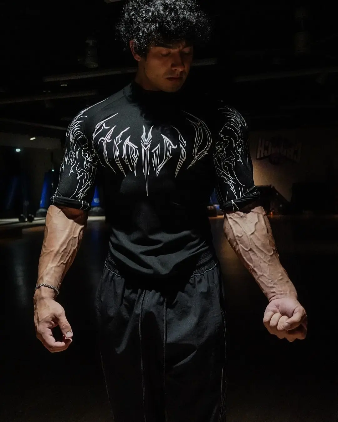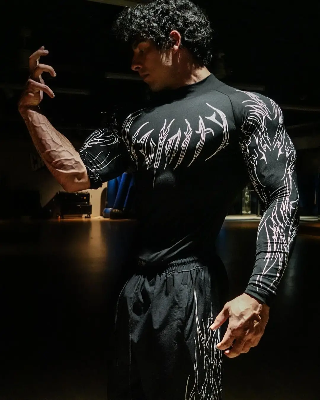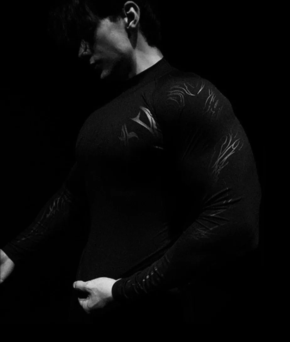 Summer New Men'S Long Sleeve American Style Trendy Brand Dark Style Sports Fitness Men'S Long Sleeve Quick-Dry Breathable Top
